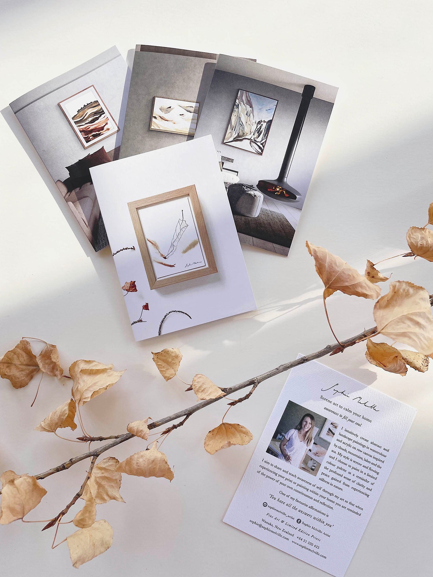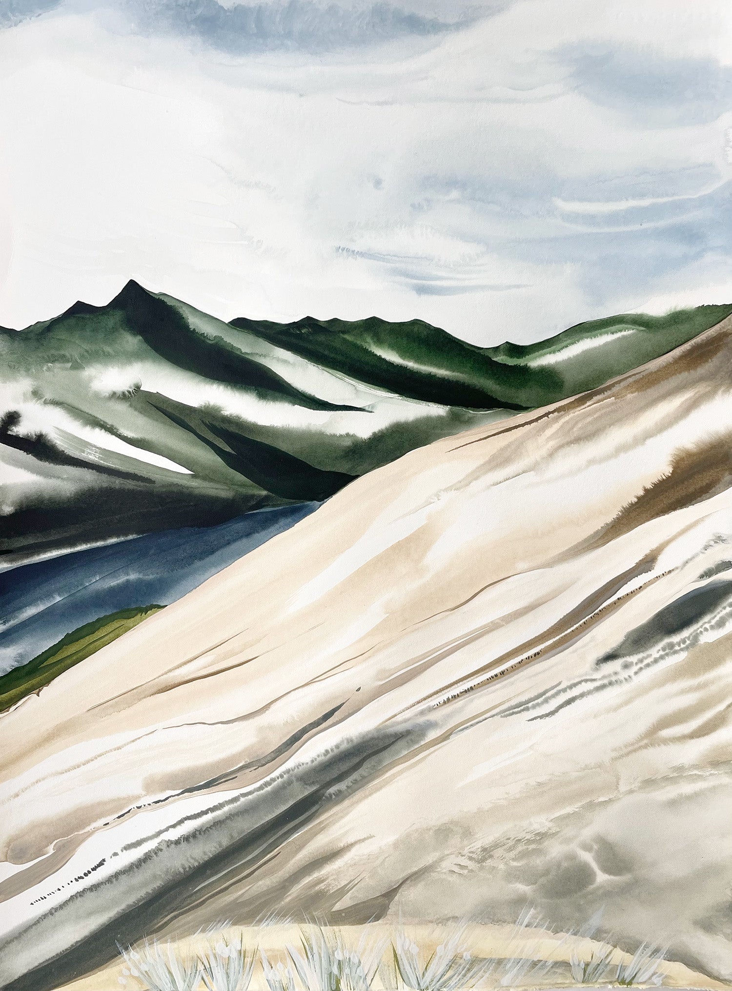 Original watercolour on fine art paper and acrylic on raw canvas paintings ~ abstract landscapes inspired by mountains, beaches and clouds.